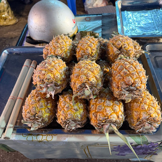 They also had foods unique to the region. They grow very small pineapples that have a tender, edible core. The middle photo is ant eggs, a local delicacy I opted not to try, but was told they are crunchy/spicy. And every part of the chicken - down to the carcass and skin - fried and available to takeaway!