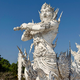 The next day, I opted for a tour at the white temple, combined with a tour of an organic tea plantation/factory, the regional cultural center, and lunch. The white temple was started in 1997, and is still a work in progress with the artist continuing to add and embellish buildings and the grounds. Because its contemporary, it has many modern references - for example, this robot statue (aka, my new boyfriend) seemed incongruous at first, but less so as I saw the same type of imagery sprinkled throughout.